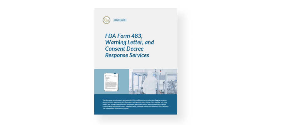 If your organization is addressing a Form 483, warning letter, or broader remediation effort, we can assist. Our network of thousands of life-science consultants —including 250 former FDA professionals—supports manufacturers in developing credible responses, executing CAPAs, writing and revising SOPs, and rebuilding quality systems that meet modern cGMP expectations.