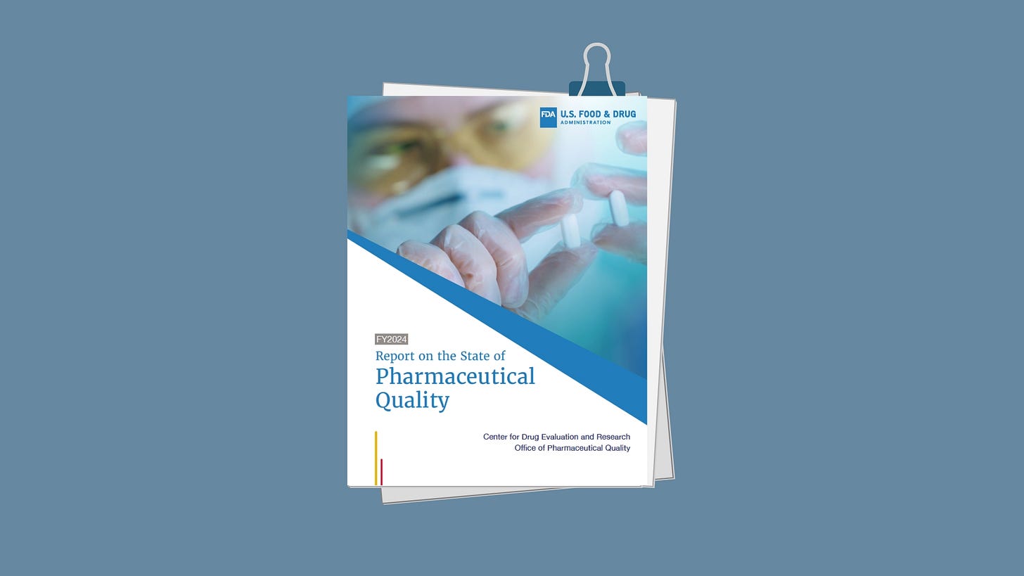 The FDA's Office of Pharmaceutical Quality (OPQ) has released its seventh annual Report on the State of Pharmaceutical Quality for fiscal year 2024, offering a ton of trend data and analysis into drug manufacturing oversight and compliance.